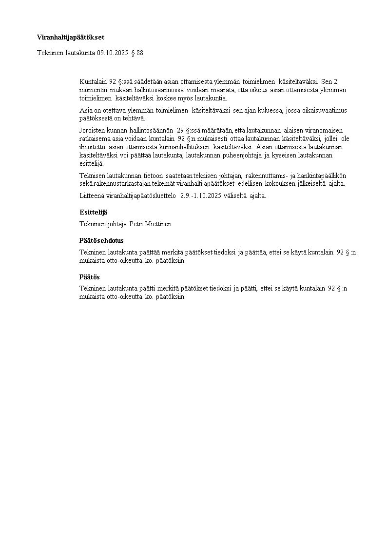 Pöytäkirja 09.10.2025/Pykälä 88